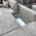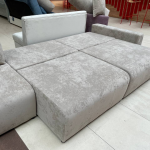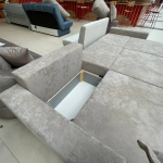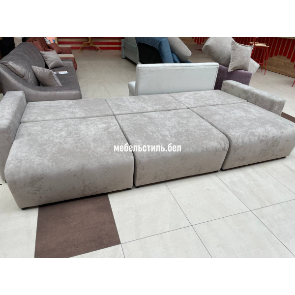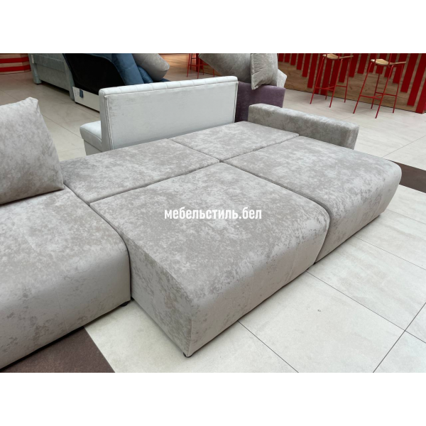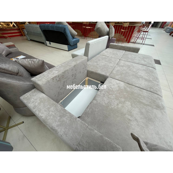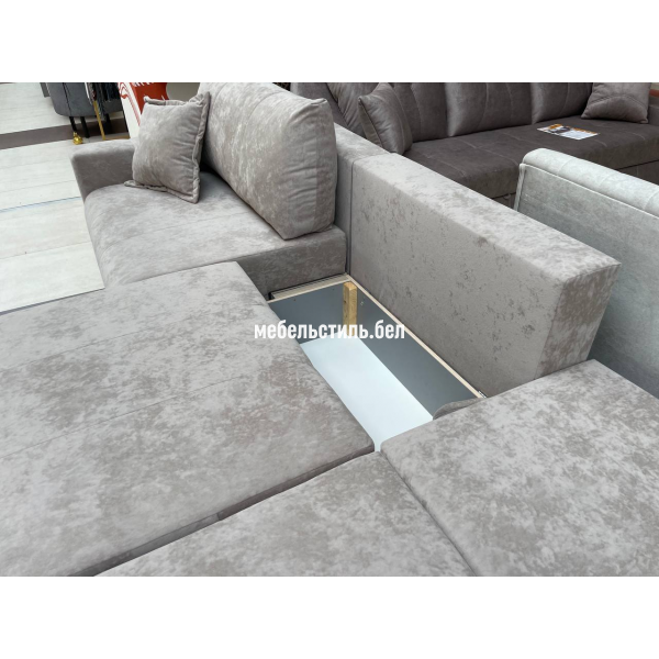 Спинка дивана на основе независимого пружинного блока + пенополиуретан. Сидение на основе независимого пружинного блока + пружинная змейка + пенополиуретан.  Основание сидения и спинки – пиломатериалы хвойных пород. Имеется  емкость для хранения в каждой секции. Так как каждая из секций раскладывается отдельно, то из прямого дивана можно получить угловой и даже П-образный диван.