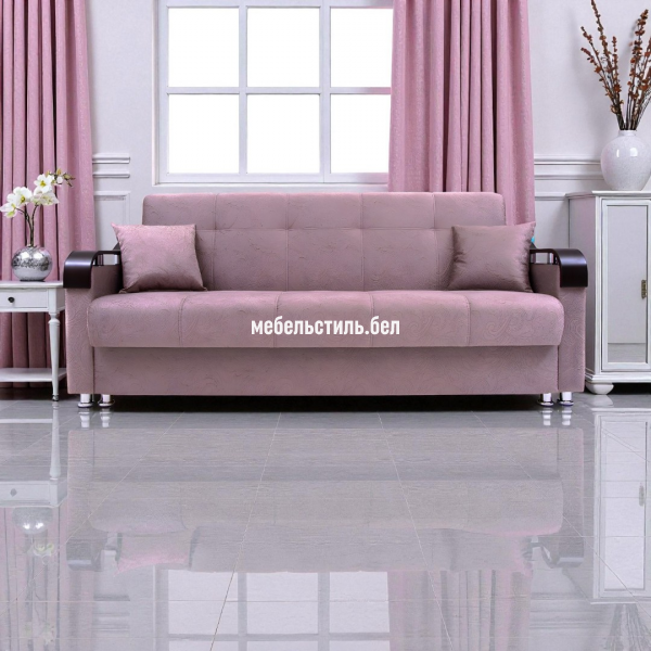 Диван-кровать Лидия — современная, удобная, простая модель. Сидение и спинка на основе пружинного блока. Основание сидения и спинки – пиломатериалы хвойных пород. Имеется емкость для постельных принадлежностей. Боковины диван-кровати съемные с декоративными накладками. В комплект входят 2  подушки. Может изготавливаться в разных цветовых решениях. Механизм трансформации — «книга»