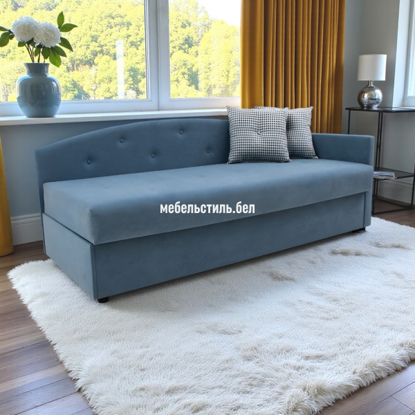 Тахта Анна — односпальная тахта. Простота и удобство в использовании. Сидение изготовлено на основе пружинного блока и пенополиуретана эластичного, основание сидения – пиломатериалы хвойных пород. Боковина универсальна — монтируется справа или слева. В комплект входят две декоративные подушки. Может изготавливаться в разных цветовых решениях. Благодаря подъемному механизму тахта имеет вместительный короб для белья.