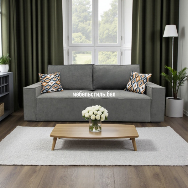 Способ раскладывания: потянуть переднюю часть дивана на себя, выдвинуть сиденье и поставить механизм на пол. Опустить спинку.