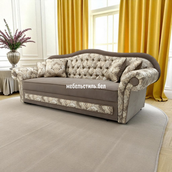 Диван-кровать Людмила — современная классическая модель с оригинальным дизайном спинки и боковин. Верхнее сидение на основе пружинного блока и пружинной змейки. Выдвижное сидение на основе пружинного блока. Спинка на основе пенополиуретана. В разложенном виде представляет 2-х спальную кровать. Так как выдвижная часть дивана находится под основным сидением, отсутствует короб для хранения. Основание сидения – пиломатериалы хвойных пород. В комплект входят 4 декоративные подушки. Может изготавливаться в разных цветовых решениях. Механизм трансформации — «пума»