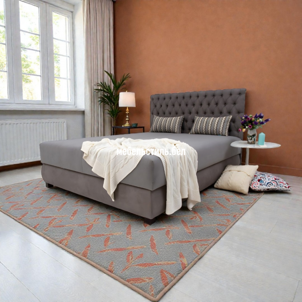 Каркас кровати выполнен из дерева хвойных пород. Ортопедический матрас создан на базе независимого пружинного блока и пенополиуретана. Такая комбинация наполнителя хорошо держит форму, обеспечивает спине необходимую поддержку во время отдыха, не деформируется и не проседает.