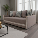Диван-кровать Джулия 2 — современная, удобная, простая модель. В разложенном виде образует спальное место. Имеется емкость для постельных принадлежностей. Боковины диван-кровати съемные. В комплект входят 5 подушек спинки. Может изготавливаться в разных цветовых решениях. Механизм трансформации – еврокнига, по запросу может устанавливаться механизм «тик-так».